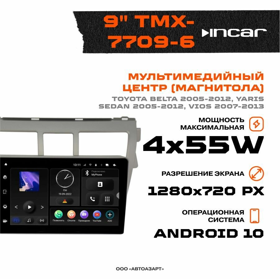Автомагнитола Incar TMX-7709-6 9 дюймов / Android 10 / 1280x720 / Wi-Fi / DSP / 6+128Gb интересное: