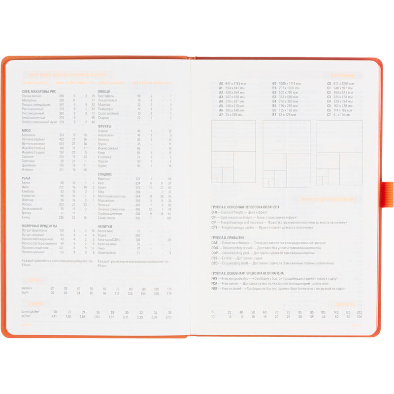 | Дополнительная информация | Без полей;Цветной обрез;Петля для ручки;Внутренний карман;Доп. горизонтальные линии;Закладка;Ляссе;Справочная информация;Закругленные углы;На резинке; вес 460 г |