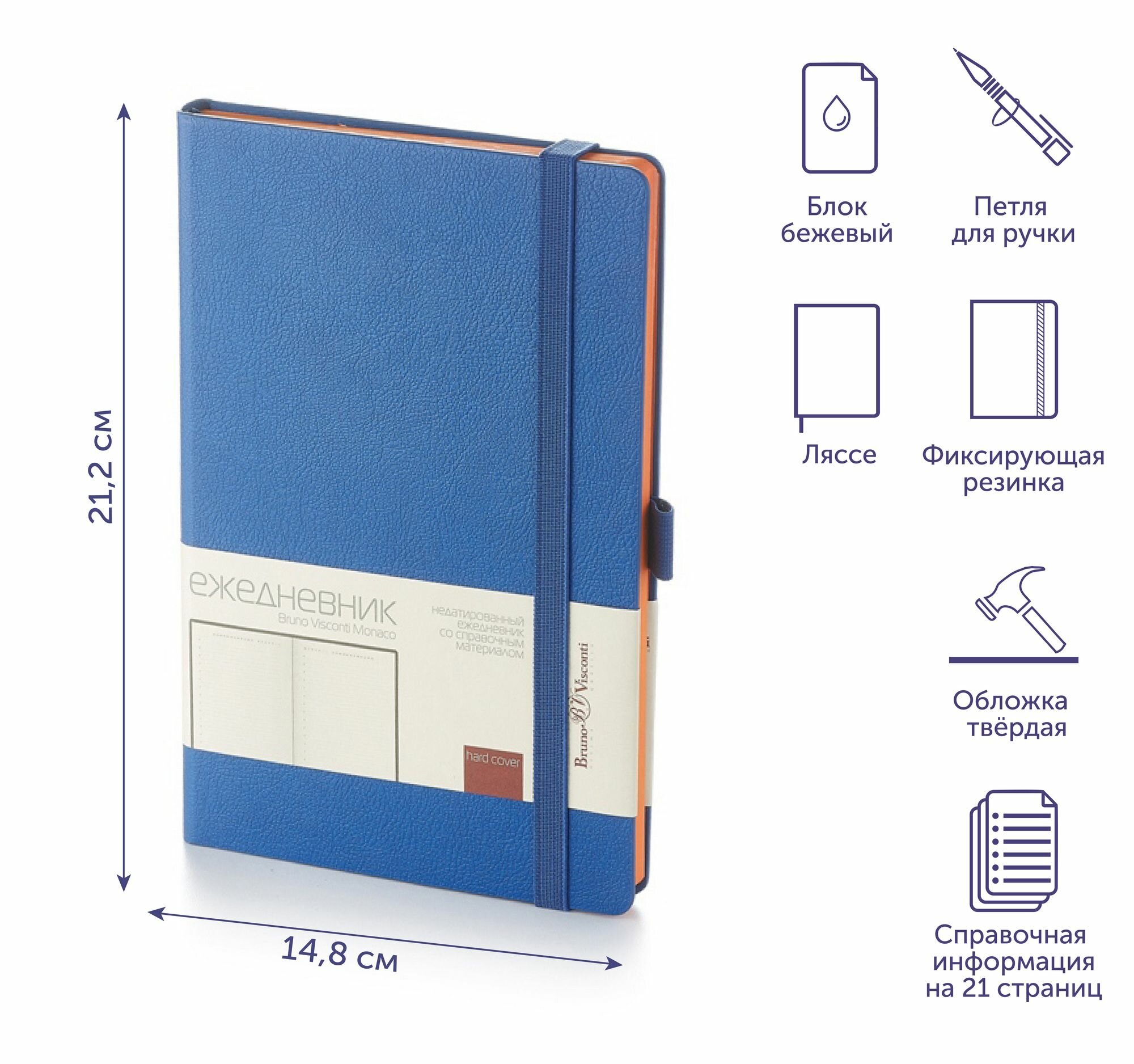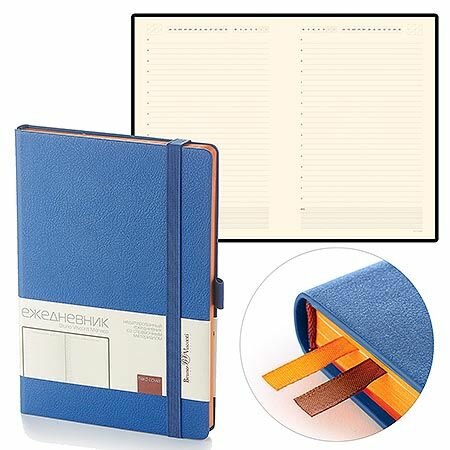 Ежедневник недатированный искусственная кожа А5 145*215мм « Bruno Visconti » 136л Monako Синий, линия, на резинке, тонированный блок 70 г/м2, скругле