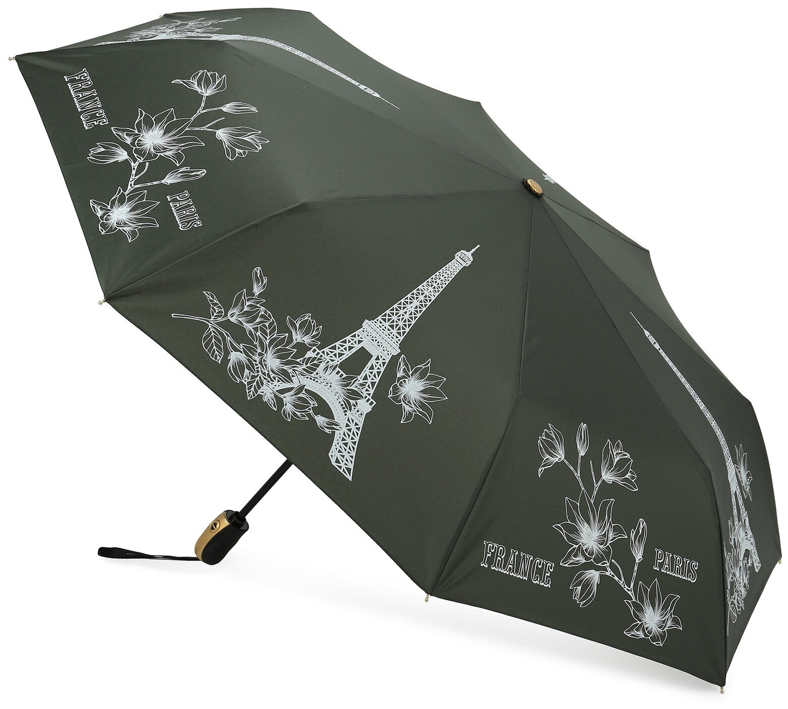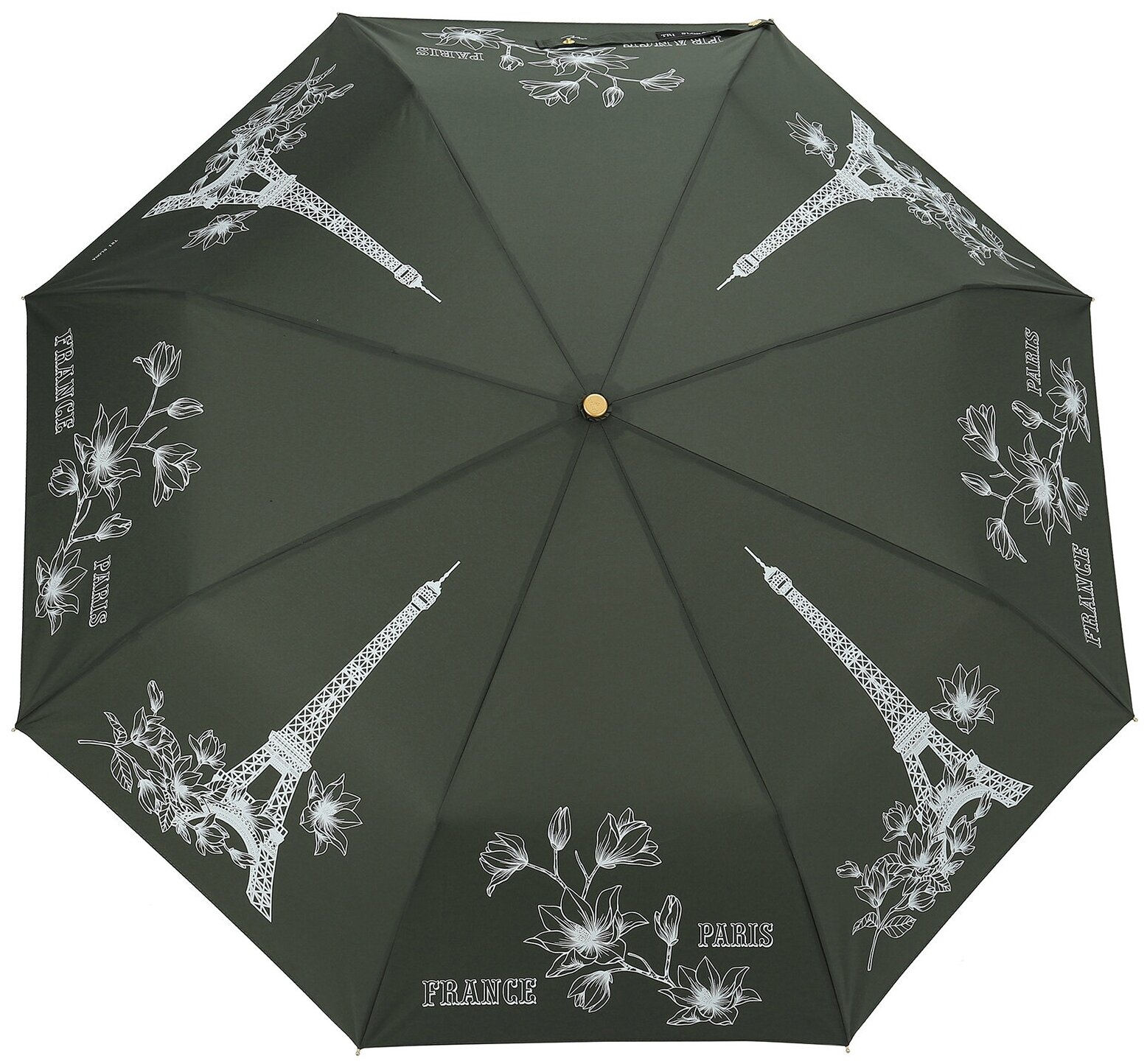 Зонт женский ТРИ слона, 3 сложения автомат, 3925-B-01, хаки интересное: