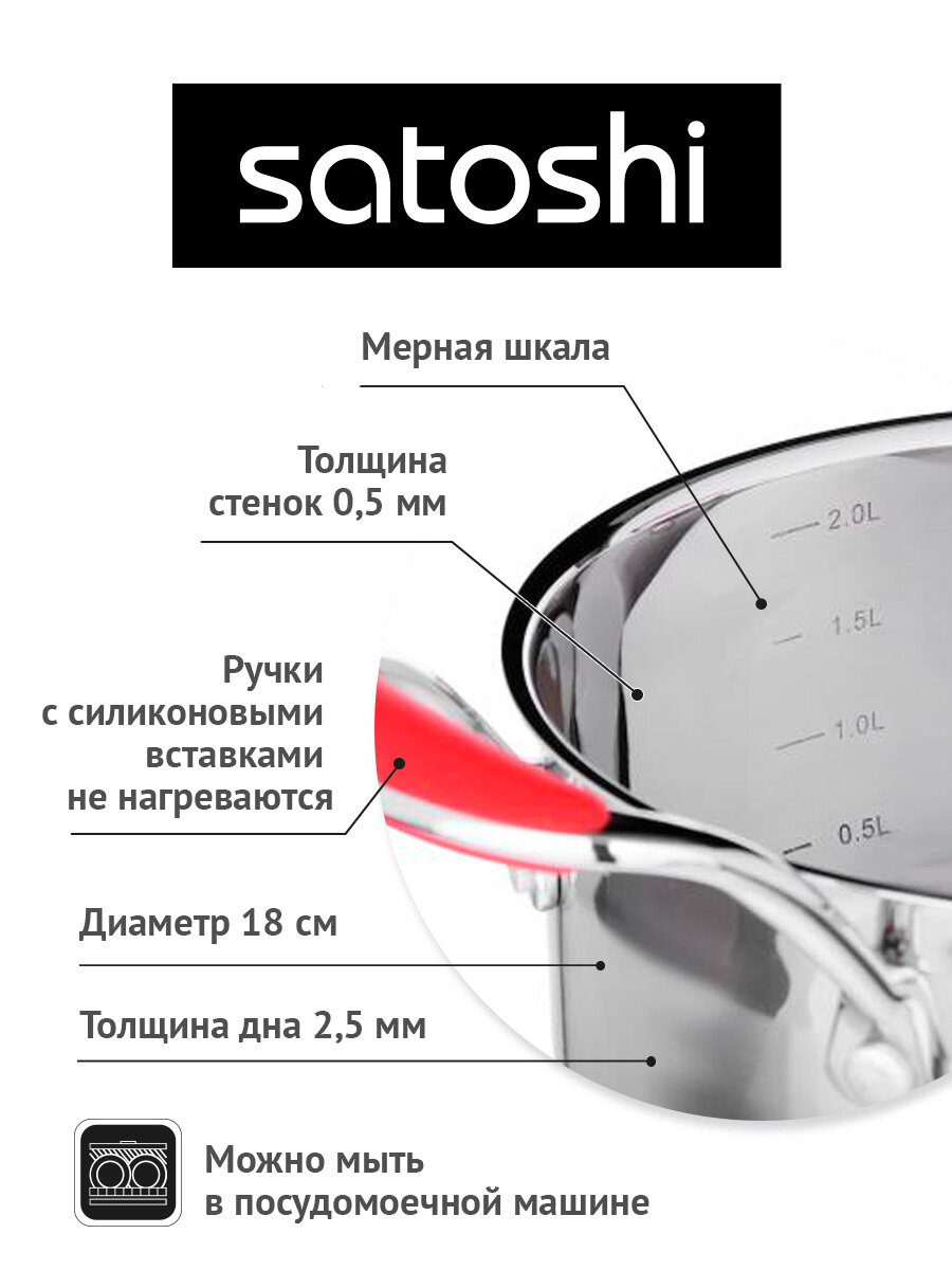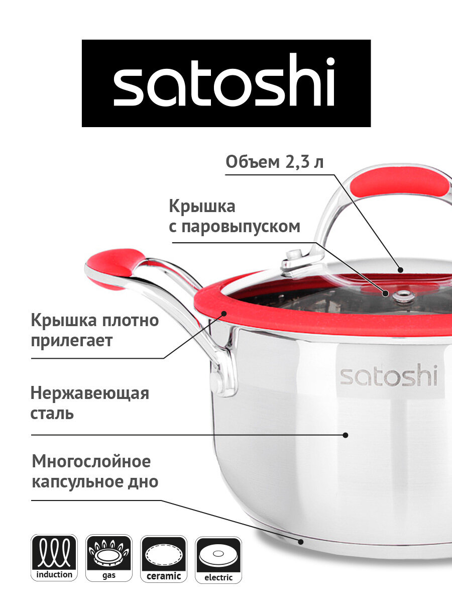Купить SATOSHI Венрай Кастрюля 18х10см 2,3л, со стекл. крышкой, индукция, нерж. сталь