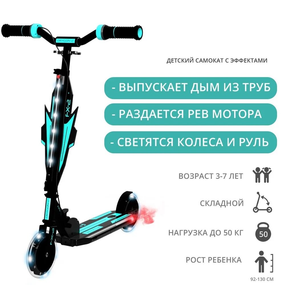 Купить Детский самокат с дымом, ревом мотора и подсветкой Small Rider Dragon 2 (аква), DRAGON2aqua
