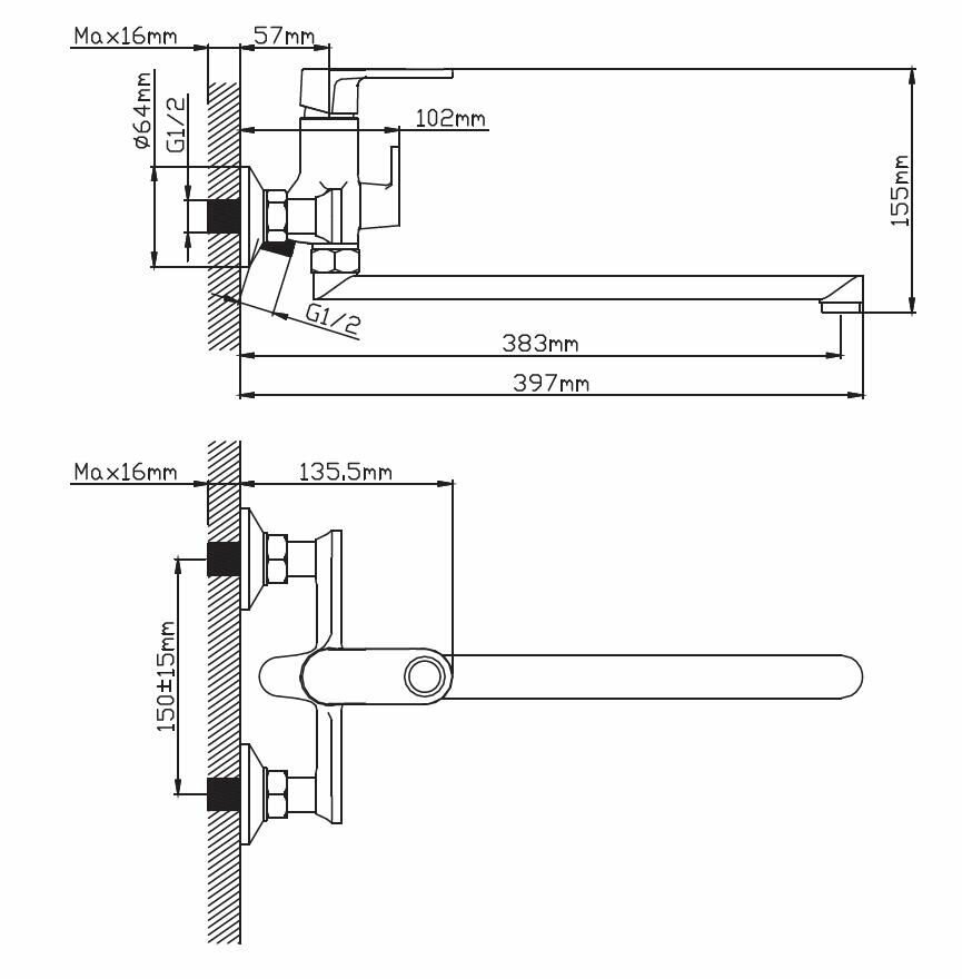 Смеситель на ванну Diadonna D80-222132 длинный плоский излив, картридж 25 мм, хром интересное: