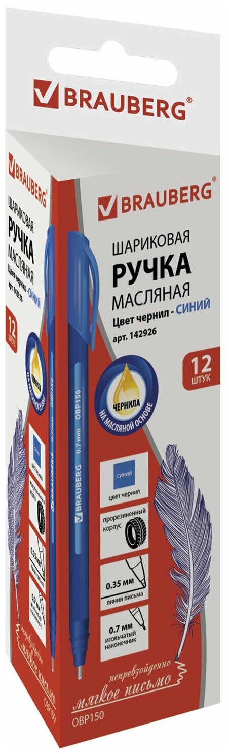 Комплект 12 шт. Ручка шариковая масляная B-B Extra Glide Soft Blue, синяя, узел 0,7 мм, линия письма 0,35 мм, 142926 интересное: