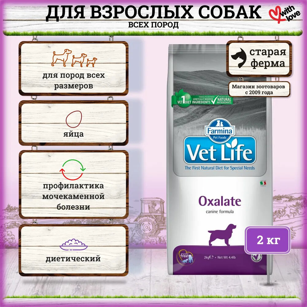 Купить Vet Life Dog Oxalate корм для собак при подавление образования оксалатов Диетический, 2 кг.
