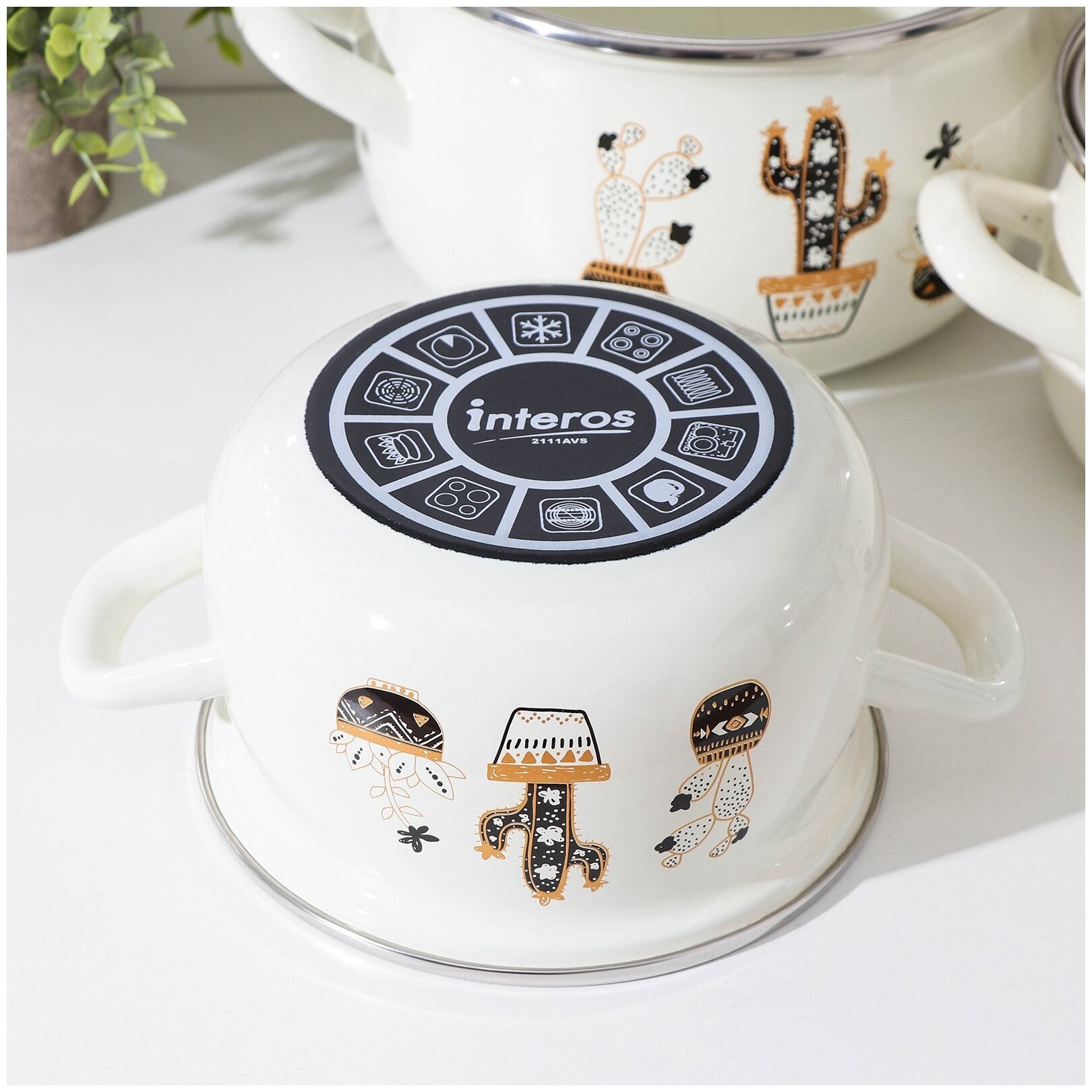 Купить Набор кастрюль Кактусы белые 6-ти предметный