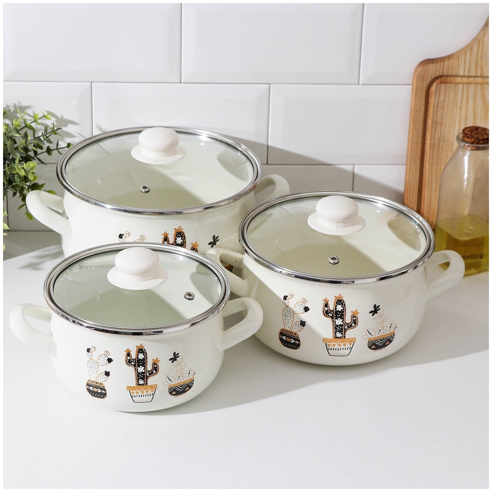 Набор кастрюль Кактусы белые 6-ти предметный интересное: