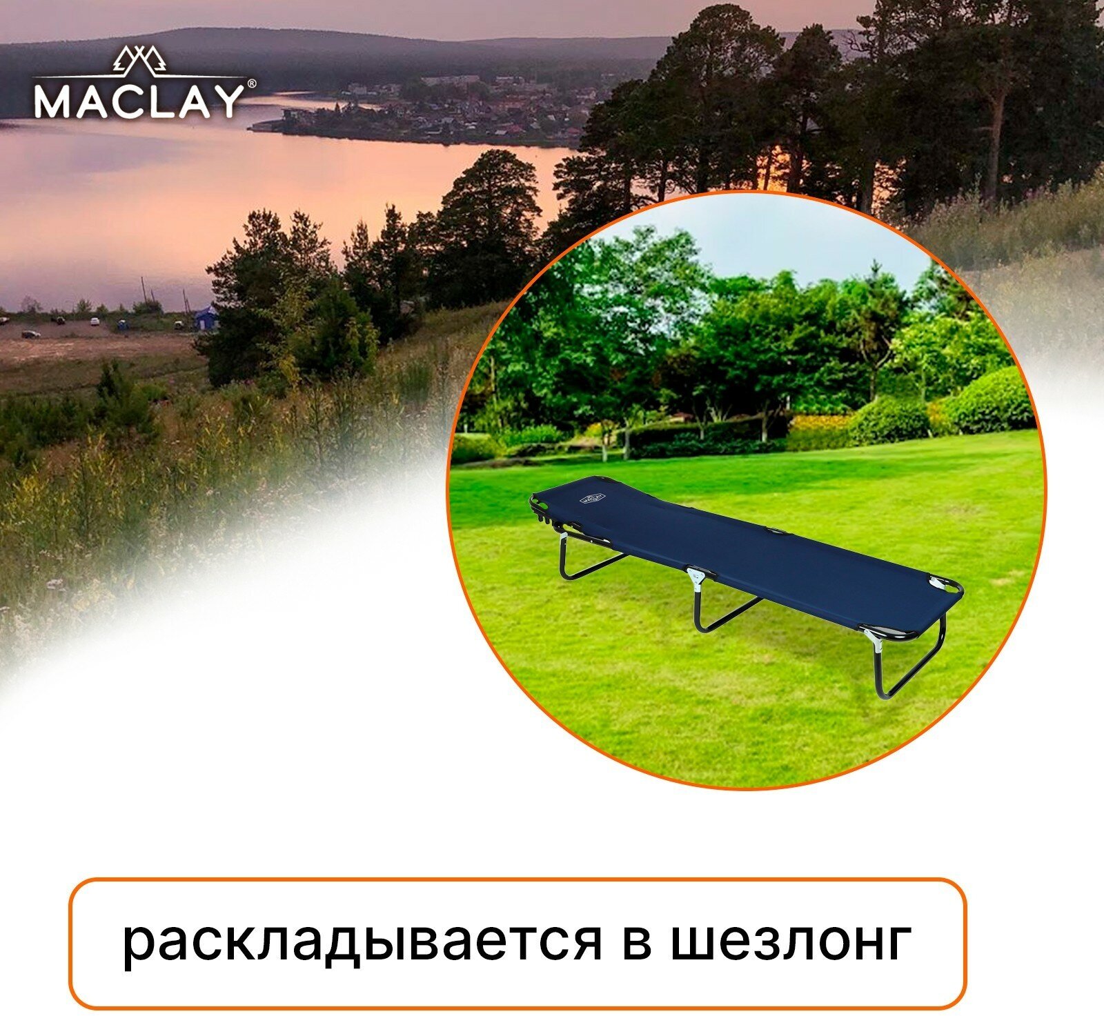 Раскладушка турист., с регулир. спинкой 192х55х28 см, цвет: темно-синий, до 100 кг Maclay 134135 интересное: