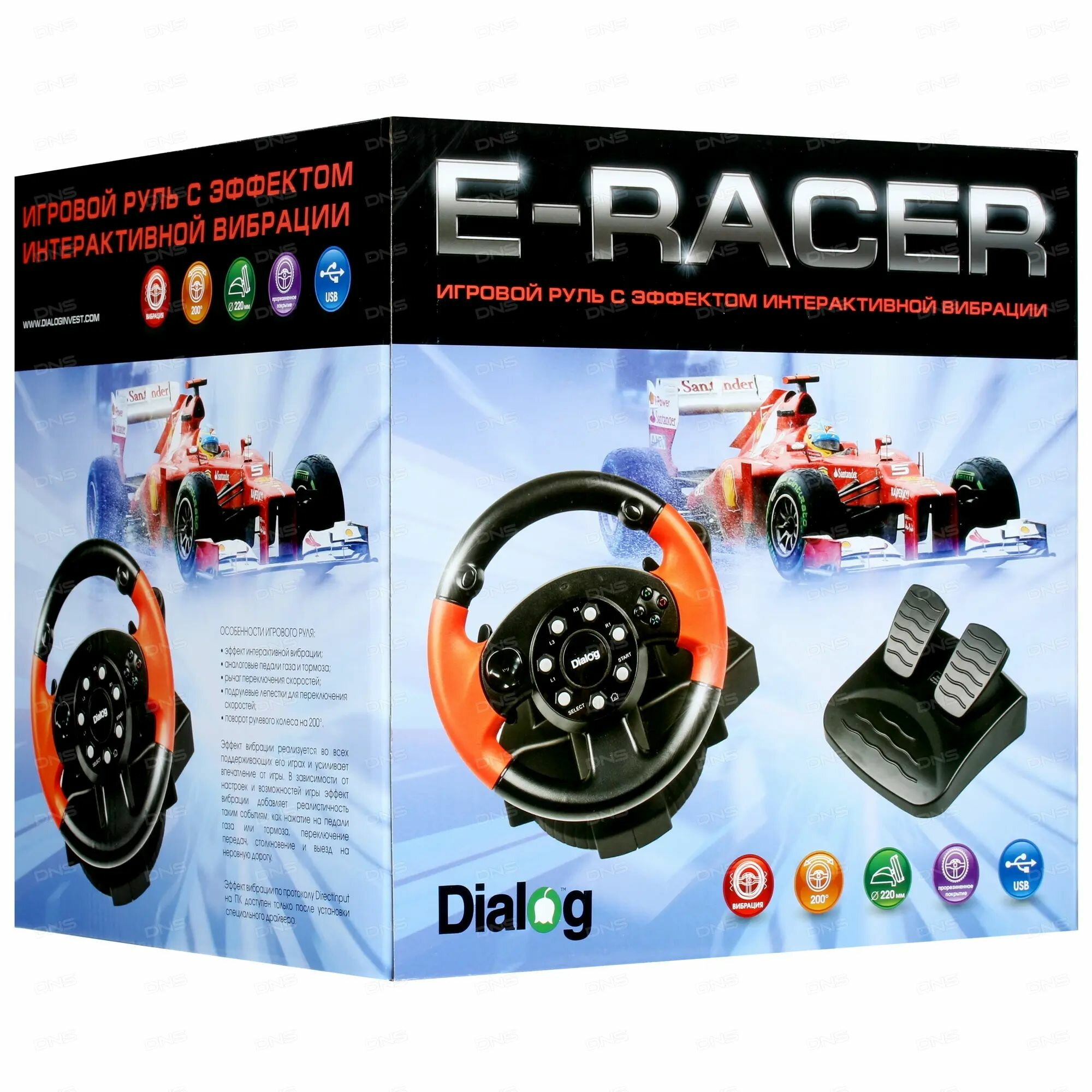 Игровой руль GW-225VR Dialog E-Racer - вибро, 2 педали + рычаг, PC USB/PS4&3/XB1&360/Android/Switch (1/3)