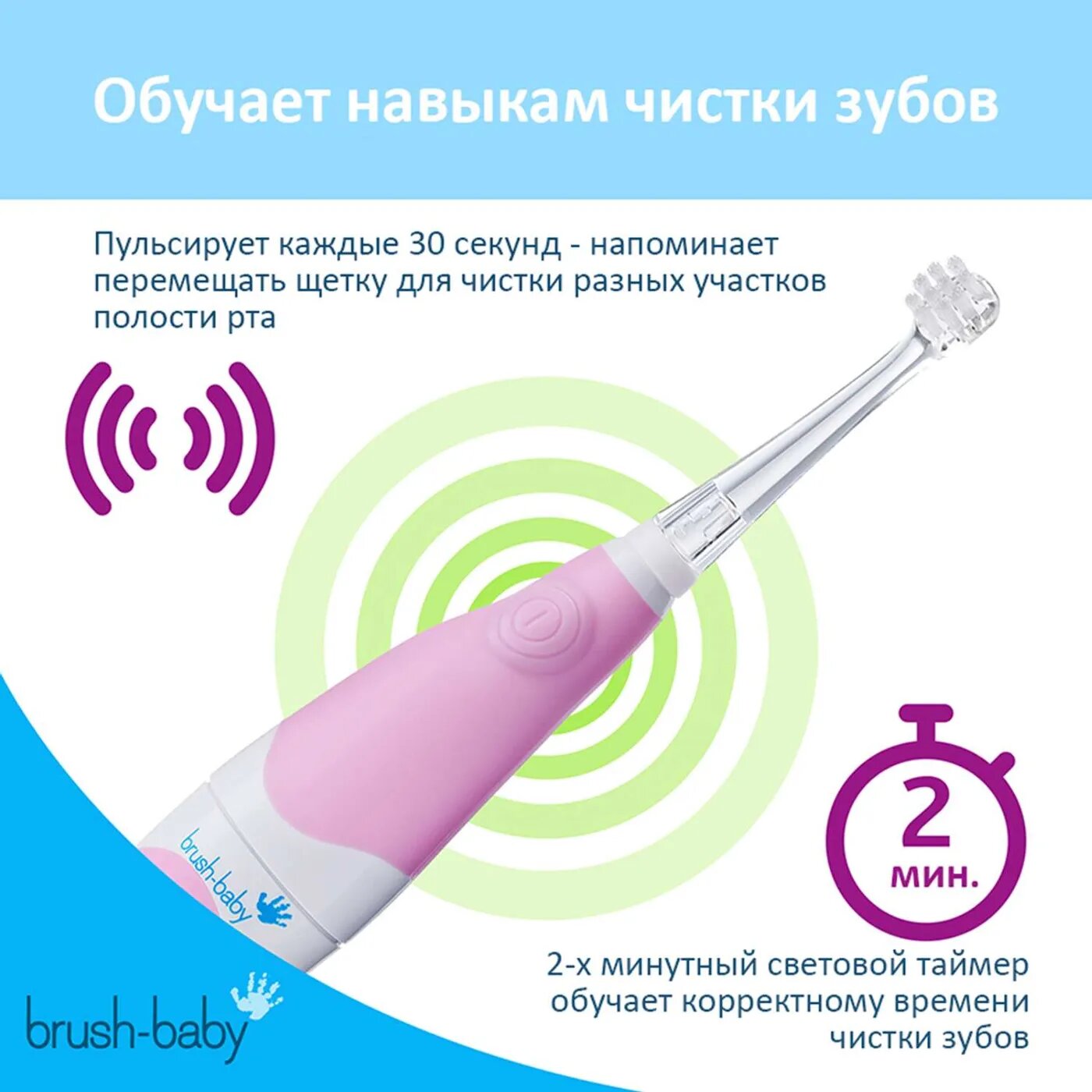Brush-Baby BabySonic Щетка зубная электрическая звуковая для детей с 0 до 3 лет розовый
