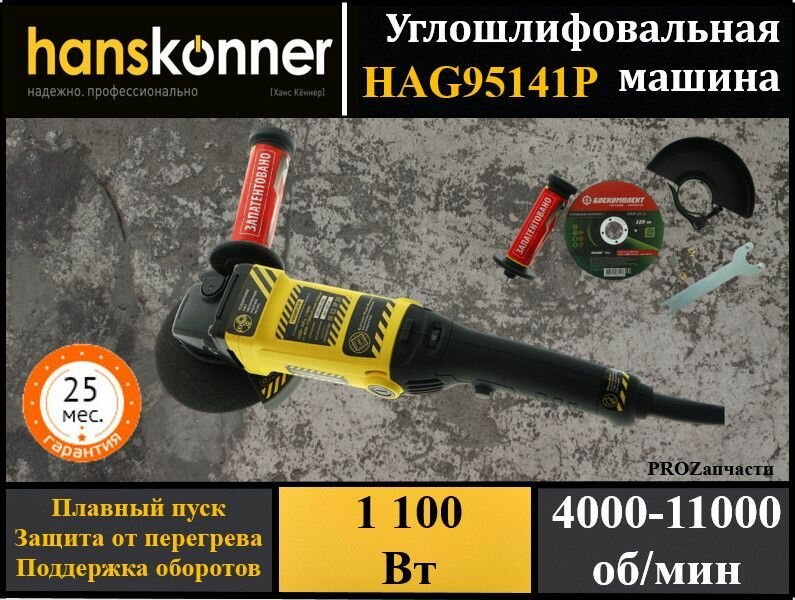 СохранитьУглошлифовальная машина Hanskonner HAG95141P интересное: