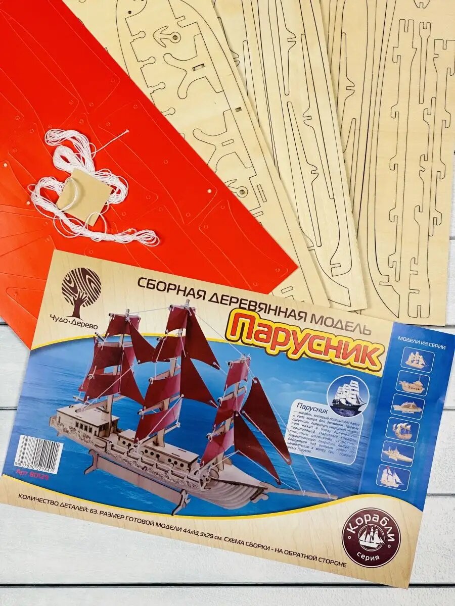 СохранитьСборная деревянная модель Чудо-Дерево Корабли Парусник 44 см интересное:
