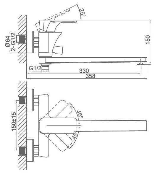 | Управление смесителем | рычажное |