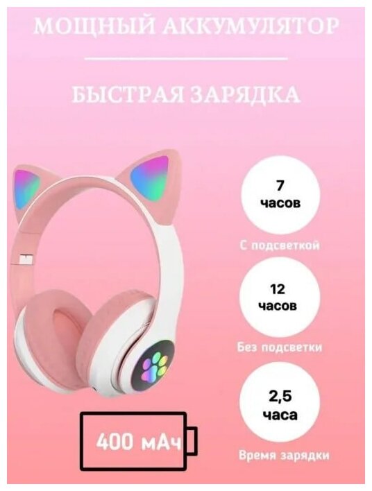 Беспроводные наушники Bluetooth со светящимися кошачьими ушами STN-28 / розовые