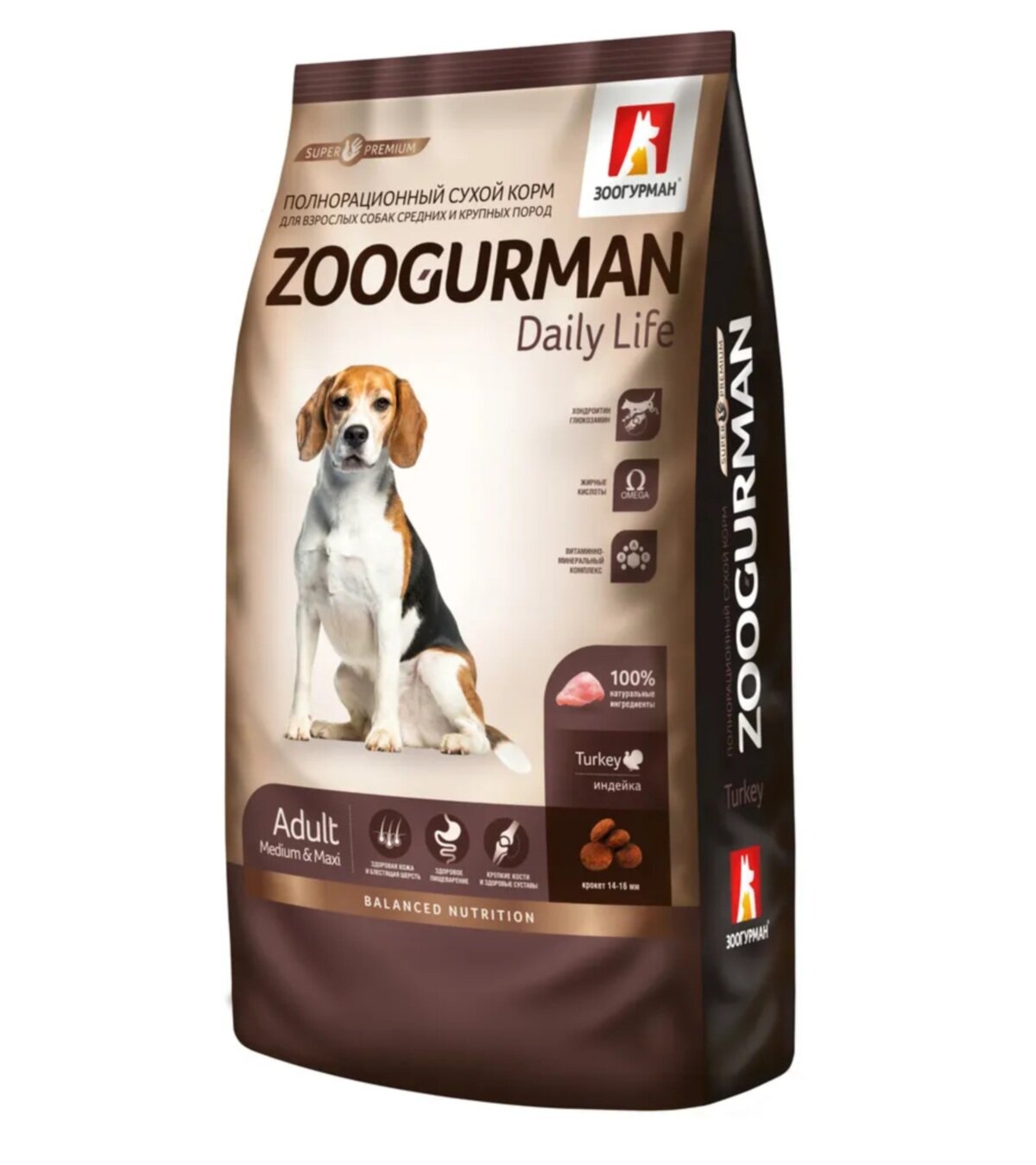 Купить ZOOGURMAN DAILY LIFE для взрослых собак средних и крупных пород с индейкой (12 кг)