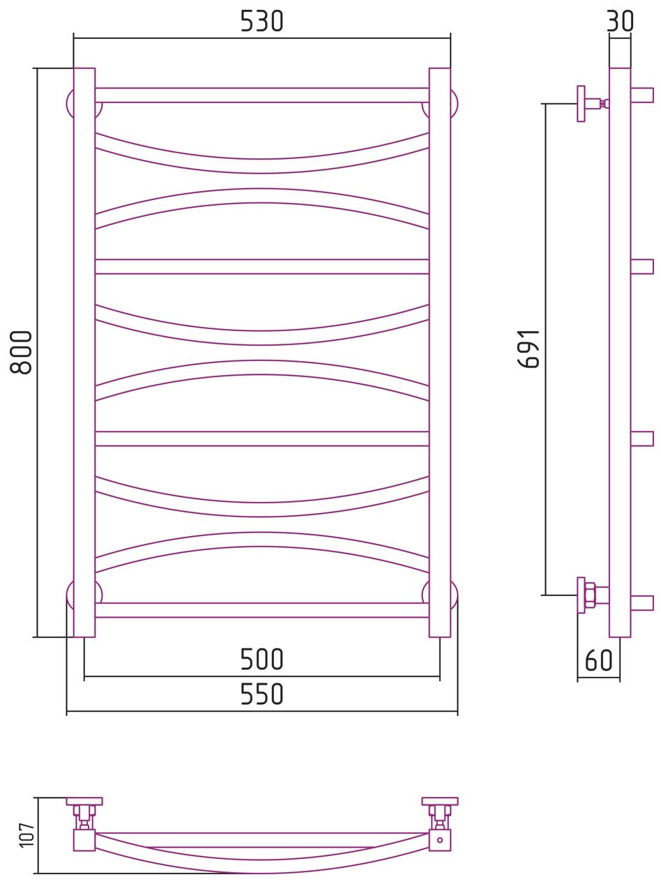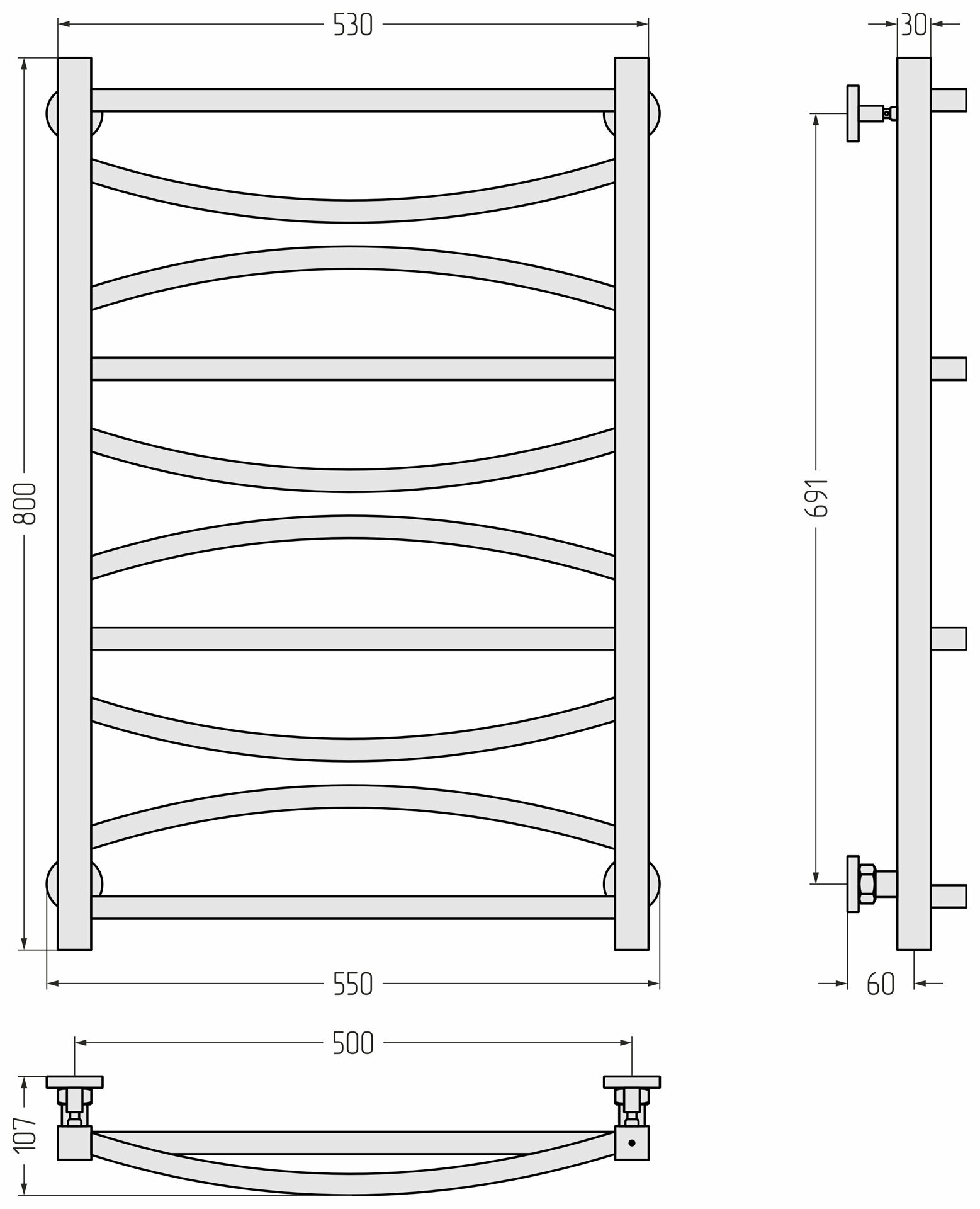 Водяной полотенцесушитель Aquanet Mauro(г2) 800x500