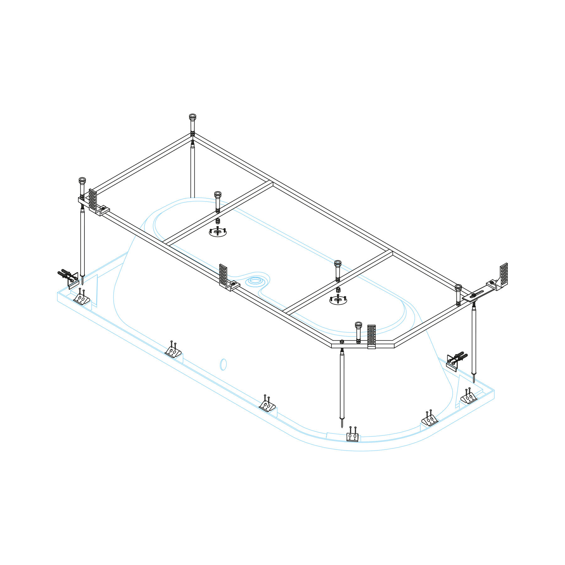 Для ванны Roca SURESTE 150х70см монтажный комплект (ZRU9302779) (рама, слив-перелив с сифоном, крепеж к стене, крепеж панели)