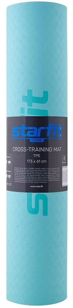 Коврик для йоги и фитнеса Core FM-201 173x61, TPE, мятный/серый, 0,7 см, Starfit