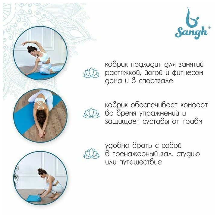 Sangh Коврик для йоги 173 х 61 х 0,3 см, цвет синий