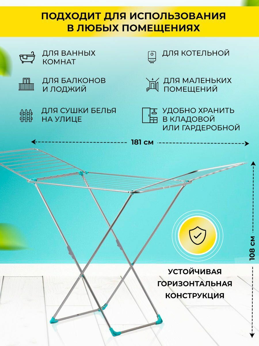 Сушилка для белья напольная складная металлическая для одежды Kappa 10 м