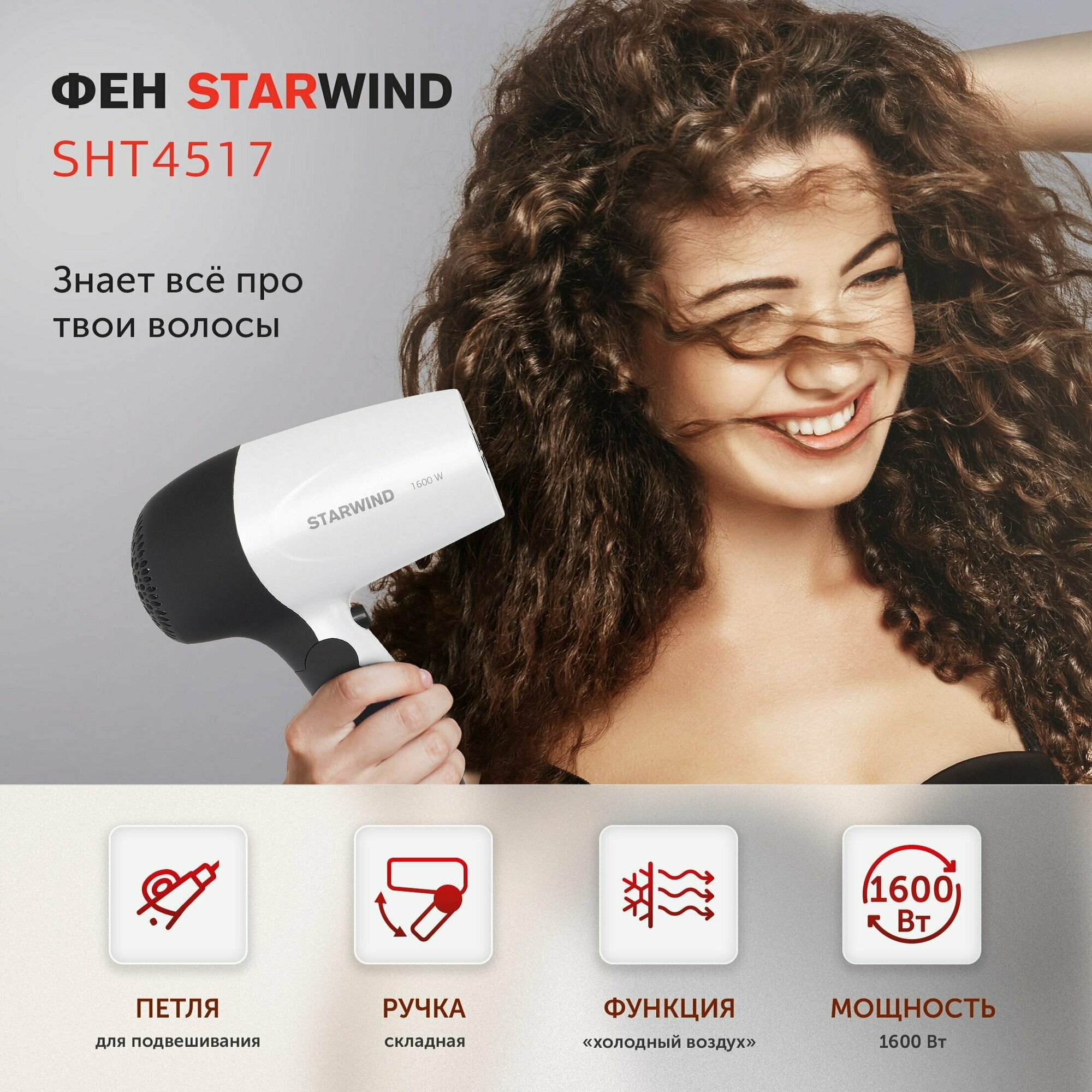 Фен STARWIND SHT4517, темно-коричневый/белый интересное: