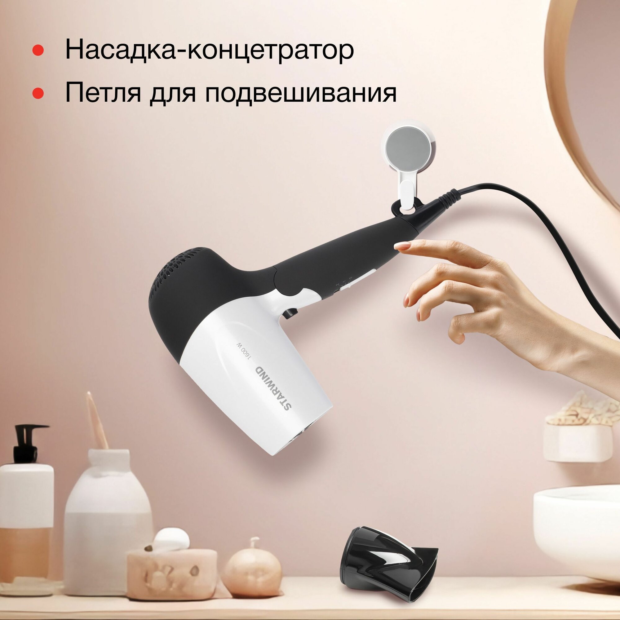 Фен StarWind SHT4517, дорожный, 1600Вт, темно-коричневый и белый