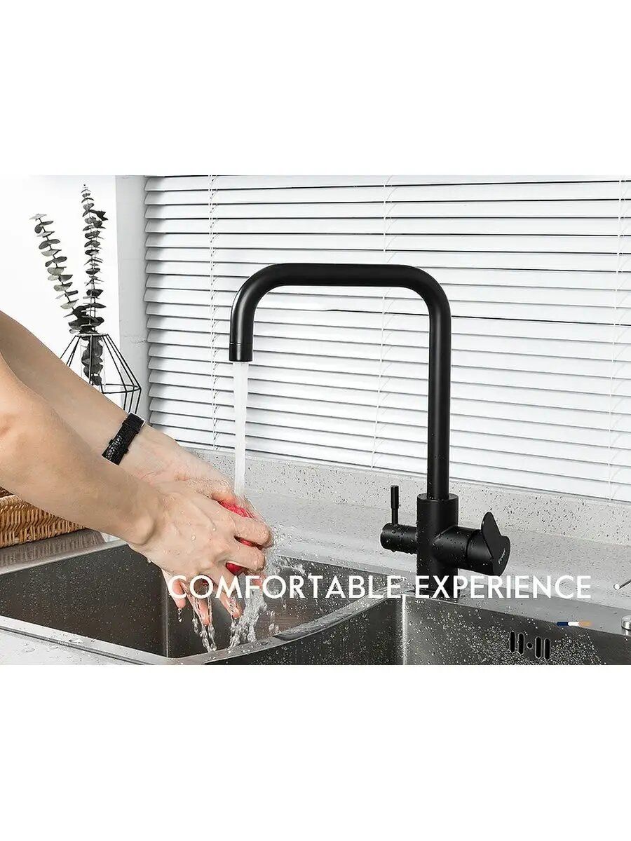 F43801-6 FRAP Смеситель для кухни с подключением фильтра питьевой воды, нержавеющая сталь/чёрный