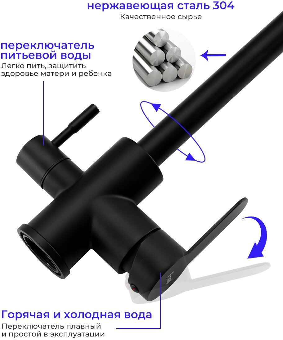 Смеситель для кухни со встроенным фильтром (краном) под питьевую воду Frap F43801-6 с аэратором черный