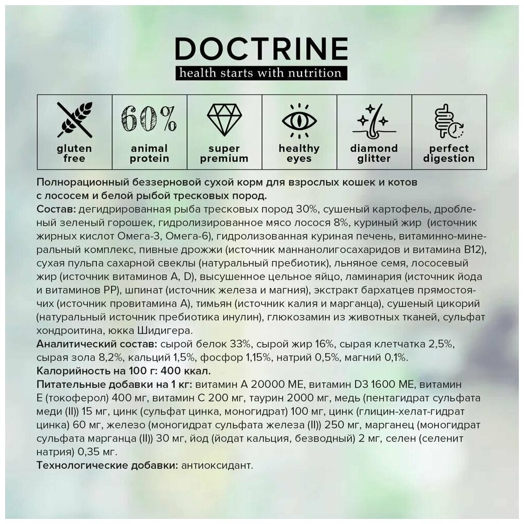 Купить DOCTRINE Сухой беззерновой корм для кошек с лососем и белой рыбой 800 гр