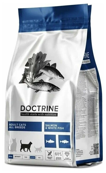 DOCTRINE ADULT CATS SALMON & WHITE FISH беззерновой для взрослых кошек с лососем и белой рыбой (0,8 кг)