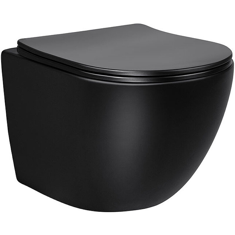 Унитаз подвесной Globo VT1-14MB безободковый, цвет матовый черный, ультратонкое сиденье soft-close