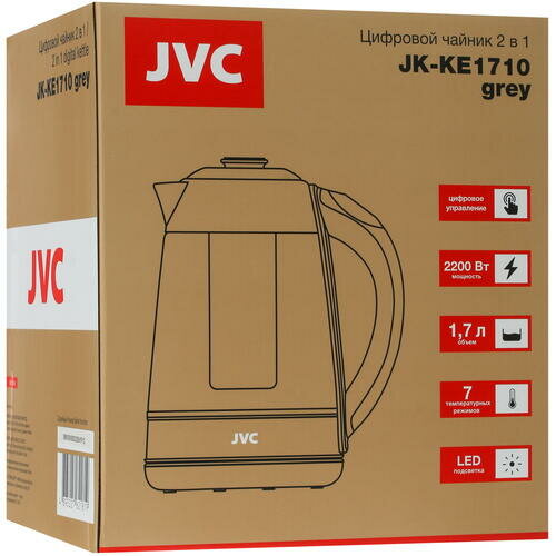 Чайник электрический JVC JK-KE1710, 1,7л., 2200ВТ, серый, 1716016