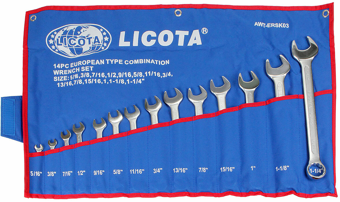 Licota Набор ключей комбинированных дюймовых 14 предметов 5/16"-1-1/4" AWT-ERSK03