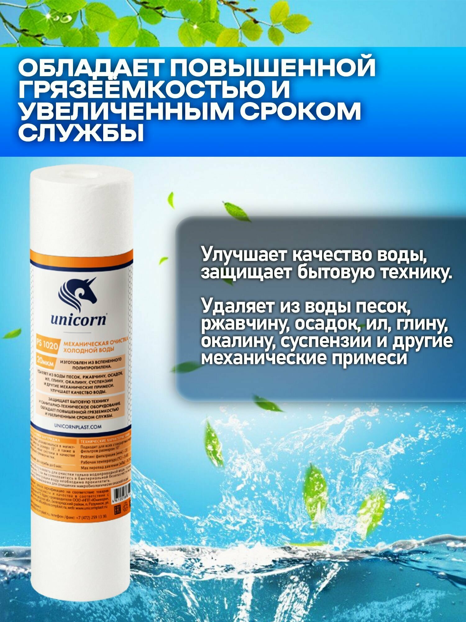 Unicorn PS 1020 Картридж из пористого полипропилена, 1 уп, 1 шт.