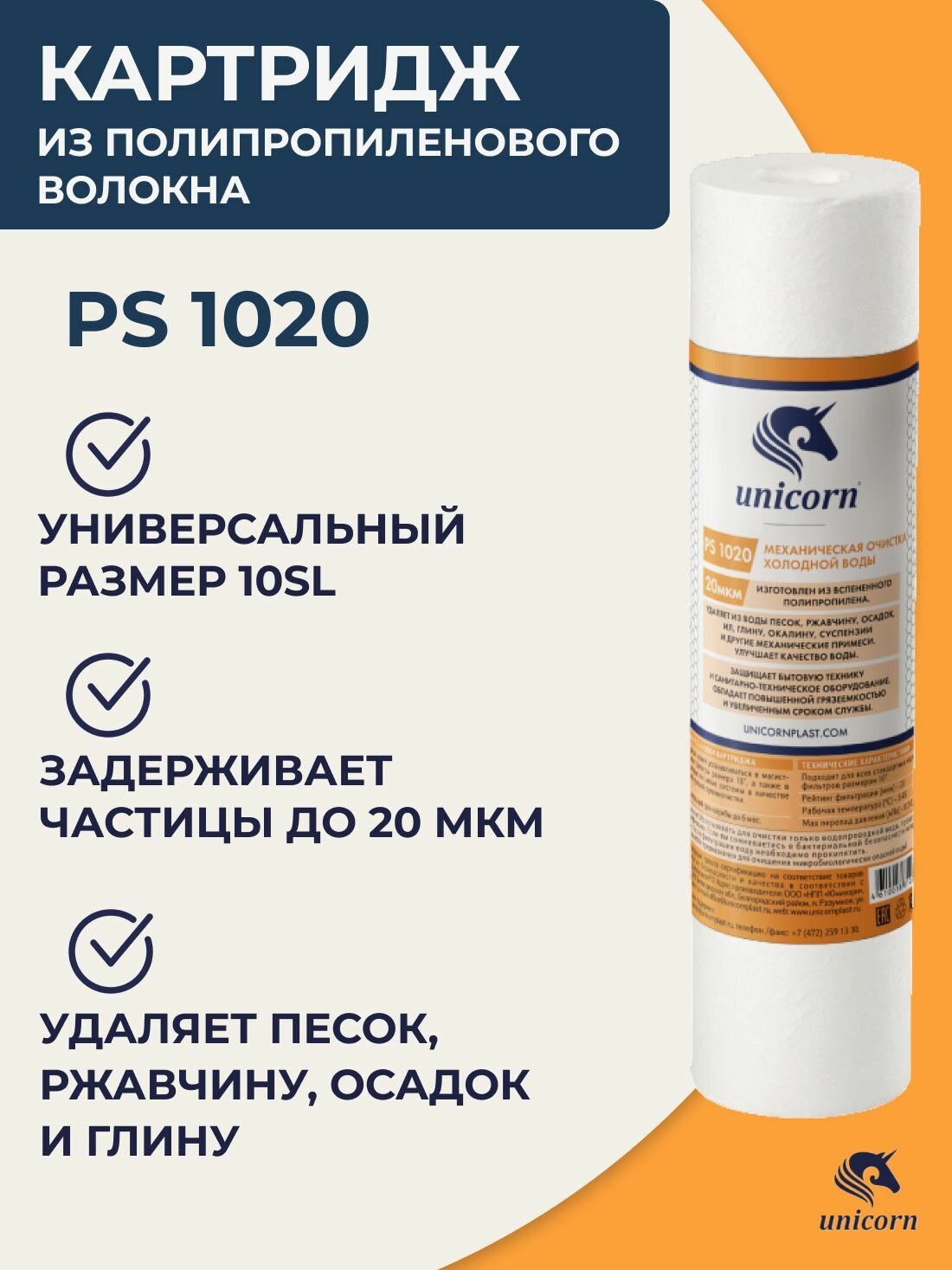 Купить Unicorn Картридж Unicorn 10SL, РS 1020 S, механическая очистка, из вспененного полипропилена, 20 мкм