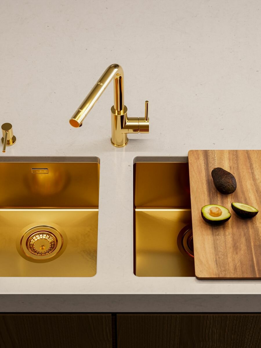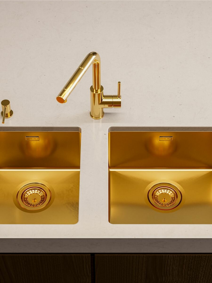 Смеситель для кухни с выдвижным поворотным изливом с PVD покрытием ALVEUS ZEOS P MONARCH BRONZE бронзовый интересное: