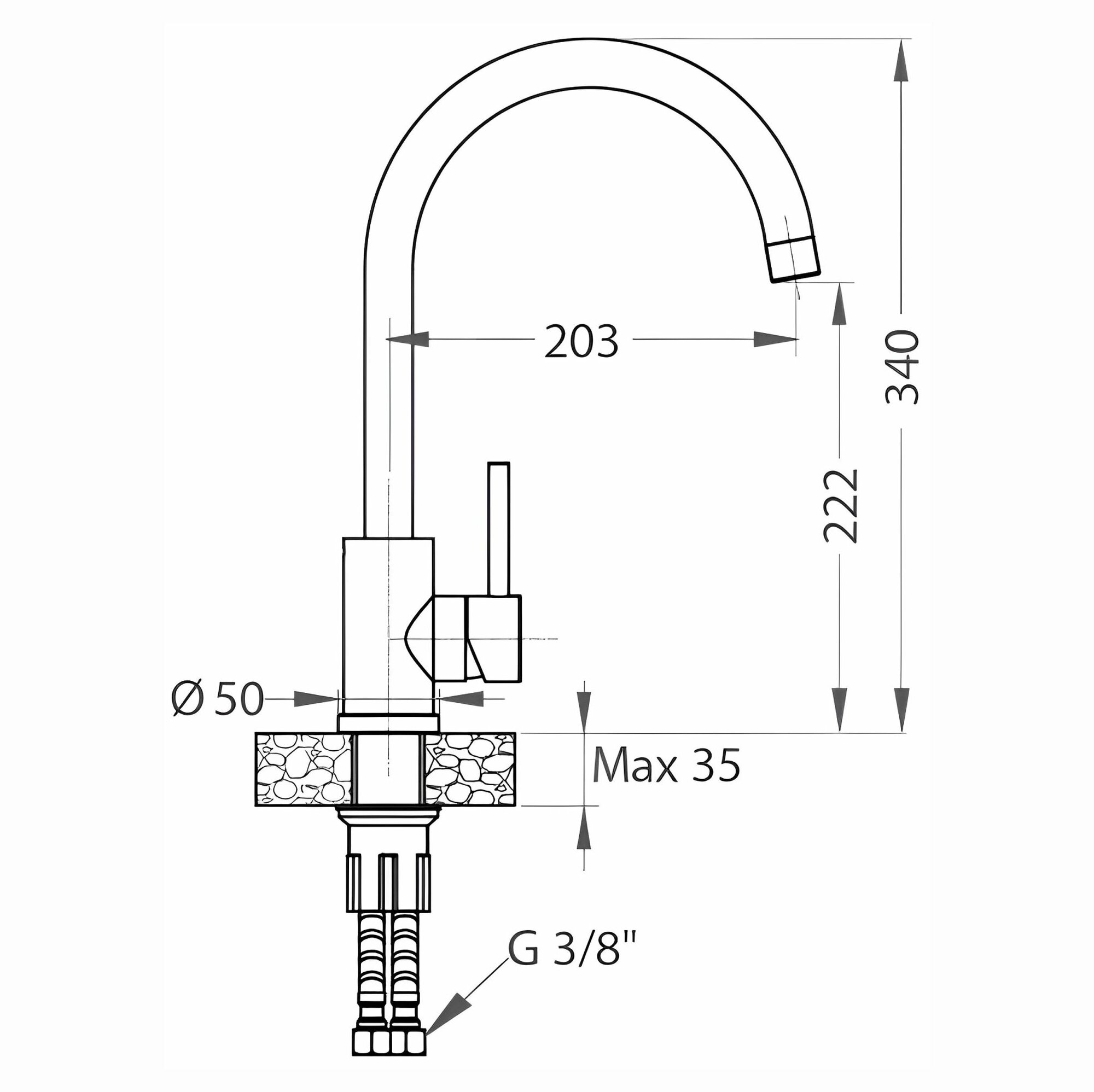 | Длина излива | 203 мм |
