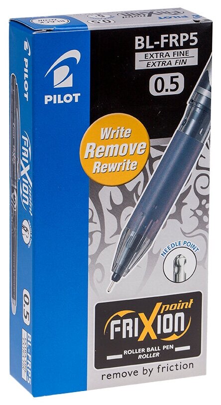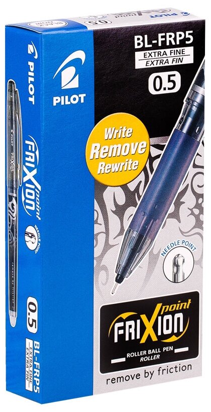 Ручка стираемая гелевая PILOT "Frixion Point", синяя, игольчатый узел 0.5 мм, линия письма 0.25 мм, BL-FRP-5