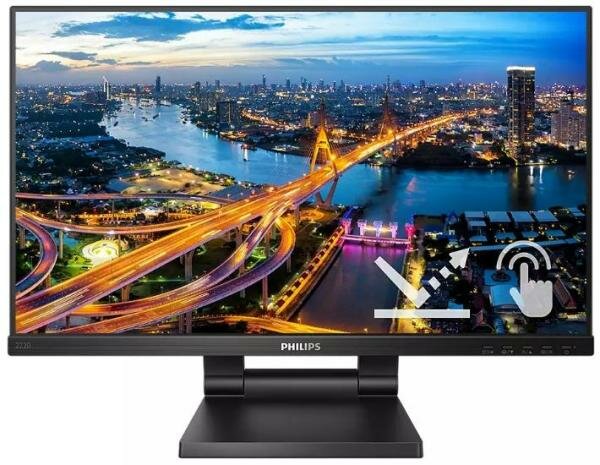 Монитор Philips монитор 21.5" PHILIPS 222B1TC/00 Black (IPS, Multi-Touch, 1920x1080, 75Hz, 4 ms, 178°/178°, 250 cd/m, 50M:1, +HDMI 1.4, +DisplayPort 1.2, +4xUSB 3.2, +MM, +регулировка по высоте)