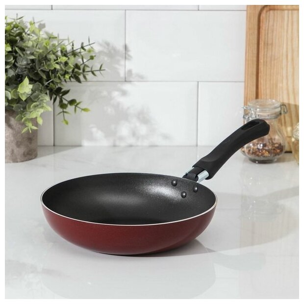 Сковорода d=20 см, пластиковая ручка, антипригарное покрытие, бордовый