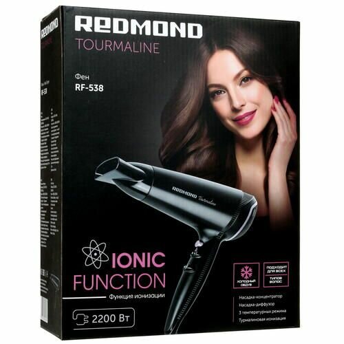 Фен REDMOND RF-538 турмалиновый 2200Вт черный (3 режима, ионизация, диффузор)