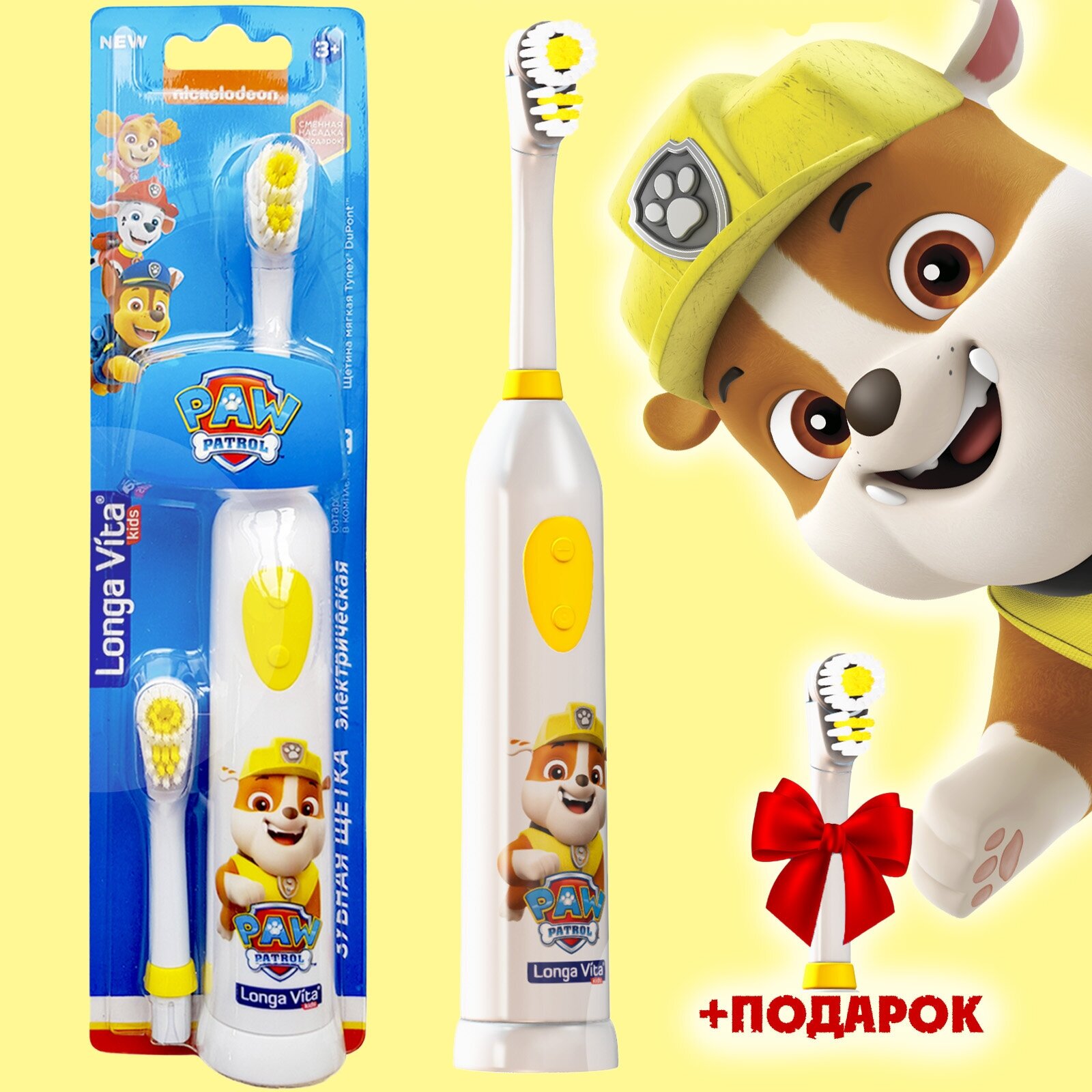 вибрационная зубная щетка Longa Vita Щенячий патруль Крепыш, белый/желтый интересное: