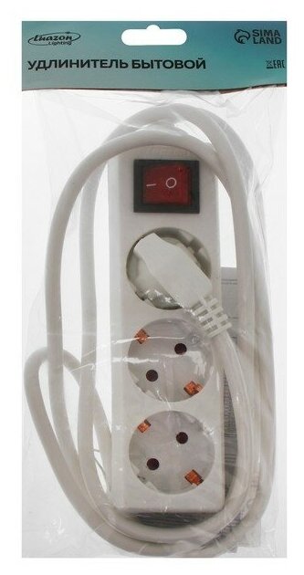 Удлинитель, 3 розетки, 1,8 м, 10 А, 2200 Вт, 3х1.5 мм2, с з/к, с выкл. интересное: