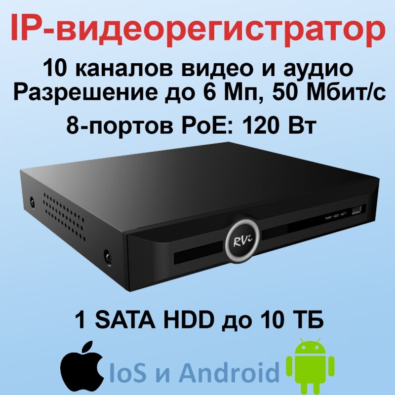 IP-видеорегистратор 10-ти канальный RVi-1NR10140-P интересное: