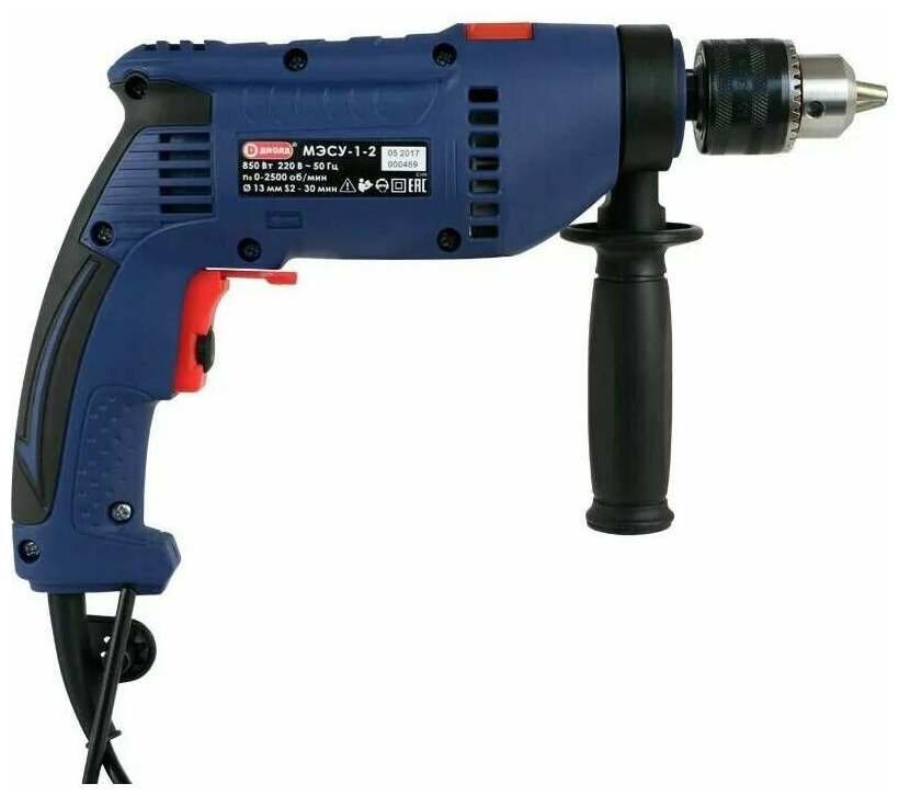 Дрель сетевая ударная диолд МЭСУ-1-2 / сдвоенный подшипник, патрон 1,5-13 мм, реверс, 850 Вт, 2500 об/мин