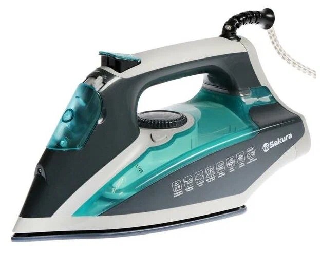 Утюг Sakura SA-3061CG Premium, 2600 Вт, керамическая подошва, 400 мл, серо-бирюзовый 7402759
