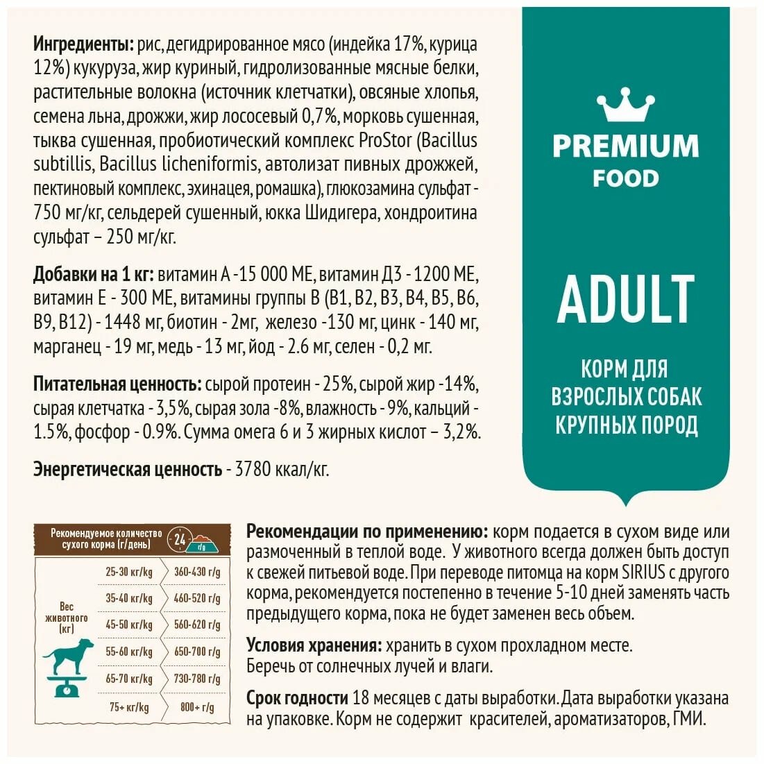 СохранитьSIRIUS Сухой корм для собак крупных пород, Индейка с овощами (15 кг) интересное:
