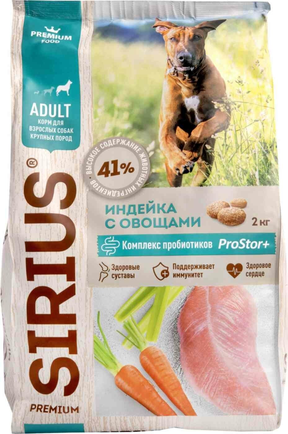 Sirius Premium Adult сухой корм для взрослых собак крупных размеров с индейкой и овощами, 2кг, 1 шт.