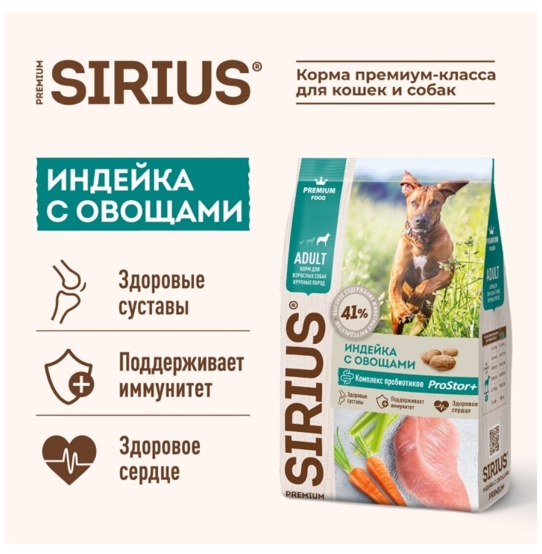 Sirius 20кг, индейка с овощами (для взрослых собак крупных пород)