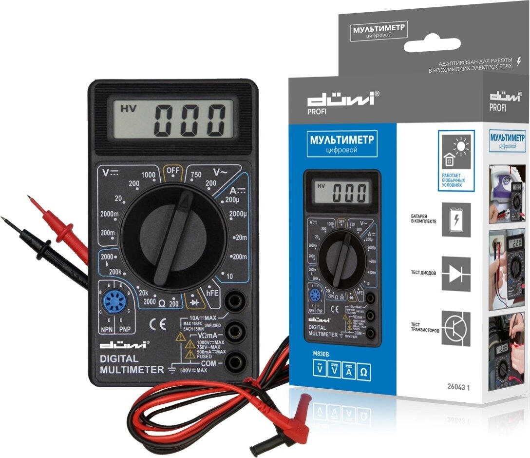 Мультиметр цифровой DUWI 26043 1 M830B PROFI черный